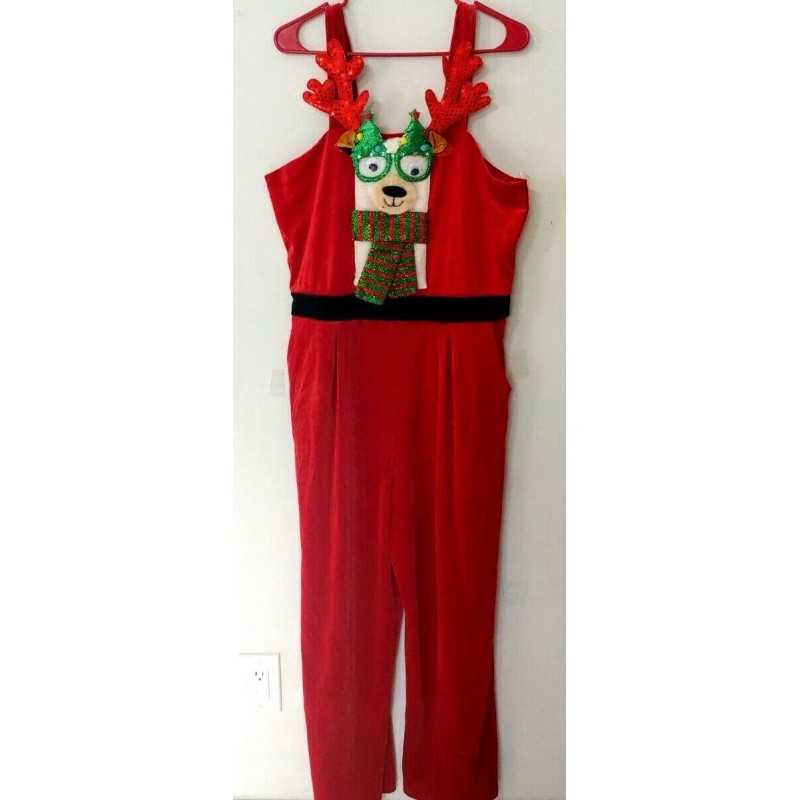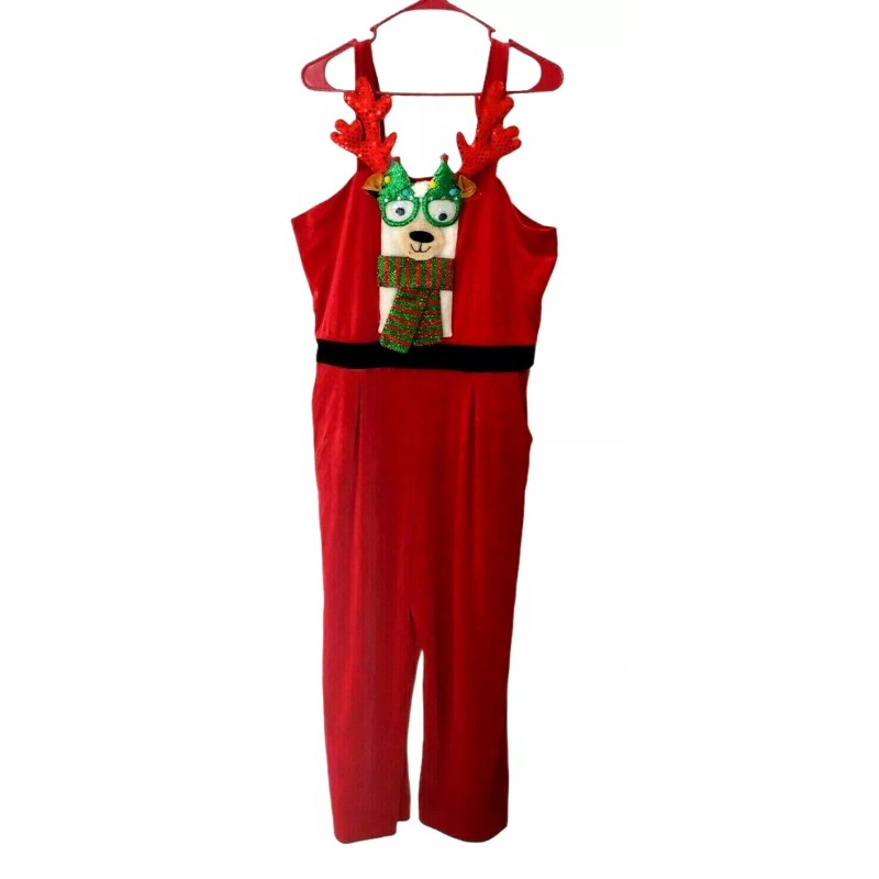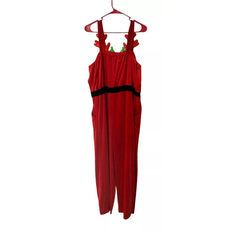 Womens Ugly Llama Velour Jumpsuit 2XL Red Green XXL Christmas Sleeveless Graphic