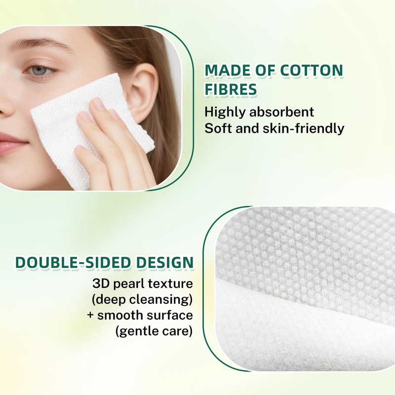 - Double-Sided Design: Featuring a 3D pearl texture on one side for deep cleansing and a smooth side for gentle care, these facial wipes effectively remove oil, makeup, and impurities while being suitable for all skin types.