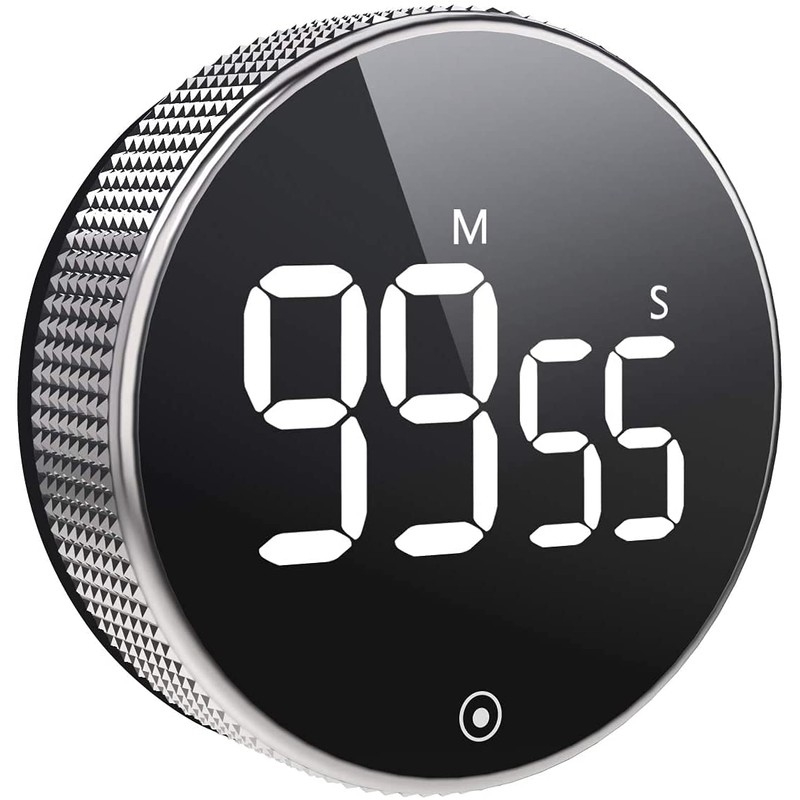 - [Easy to use and Intelligent battery saving] Twist One Button Operation DSo simple that elderly grandma and 5-year-old kids can use it easily.Siliver knob and Black body,just twist the knob to set the time,press ⊙ to start or stop .The digital light will be darken in 5 seconds and shutdown in another 5 seconds,which can last battery life.