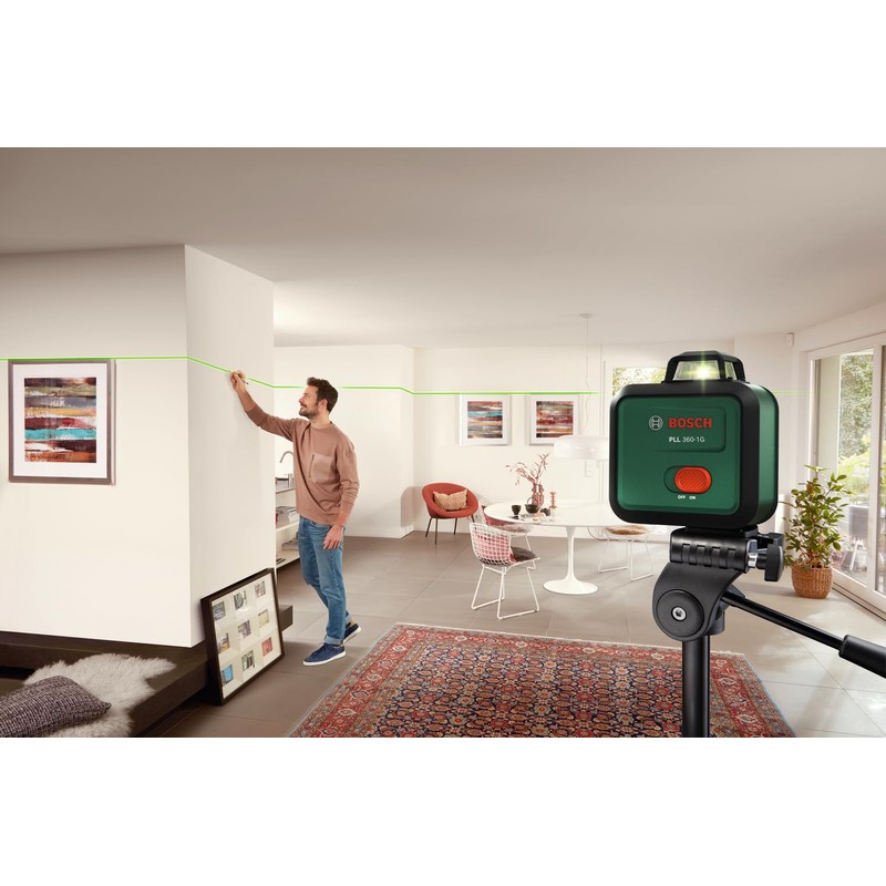 • 360° laser line: Projects a precise line across the entire room for quick and easy levelling at the same height