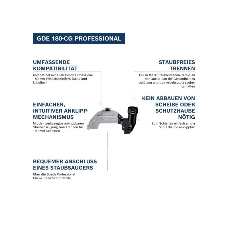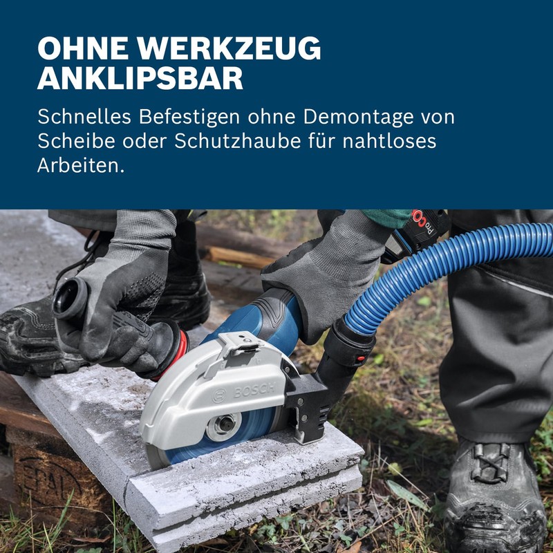 - Seamless connection: easy connection with vacuum cleaners thanks to Bosch Professional Click & Clean interface.