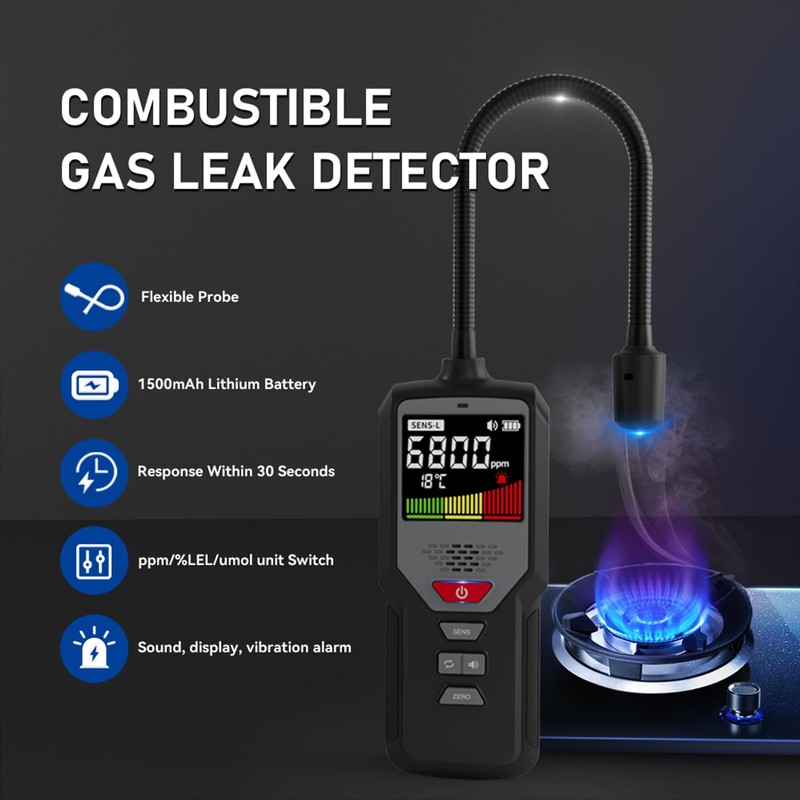 Bosean Gas Leak Detector, Recahrgeble Natural Gas leak Detector with a Flexible Probe, Gas Leak Alarm for Propane, Natural Gas, Methane, LPG, Measuring units PPM,%LEL, umol/mol changes