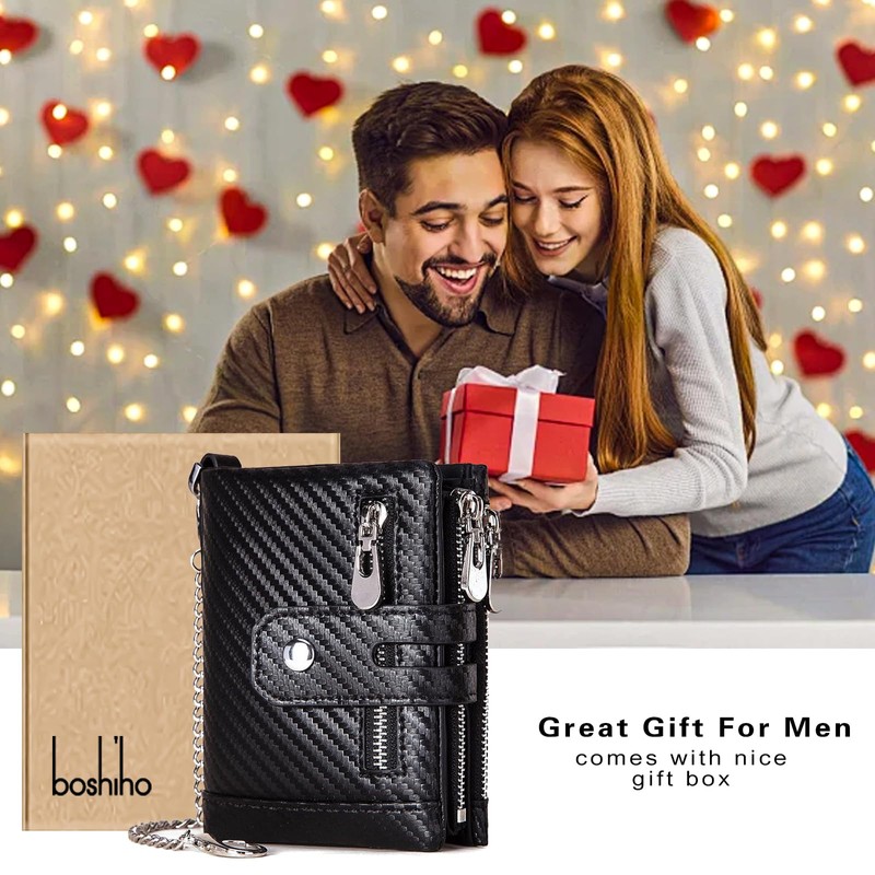 - CARBON FIBER LEATHER: boshiho chain wallet is made of carbon leather, it is extremely lightweight, durable and durable, making wallets made of it easier to carry compared to conventional leather or other materials, perfect for users looking for portability