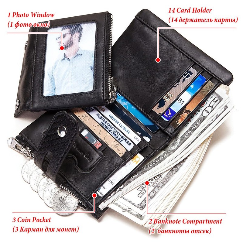 - Ample space: pocket chain wallet with 13 card slots, 2 photo windows, 1 zipper pocket and cash pocket, large enough to store your belongings