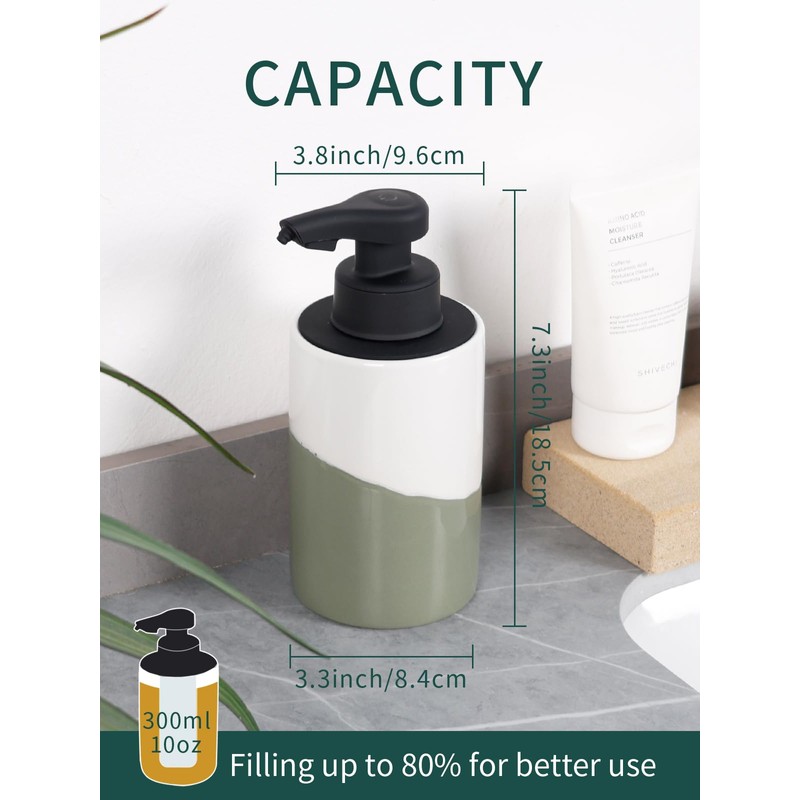 - Design: Features a modern and elegant ceramic build, blending style and functionality to complement any décorThe combination of green and white embellishes the entire ceramic bottle body, making it even more distinctive.