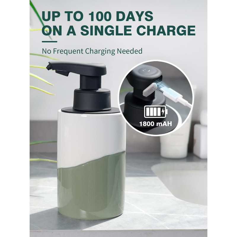 - USB-C Rechargeability: The automatic soap dispenser touchless comes equipped with a built-in 1800 mAh rechargeable battery, providing extended use. A single charge powers the dispenser for up to 3 months, ensuring both practicality and energy efficiency