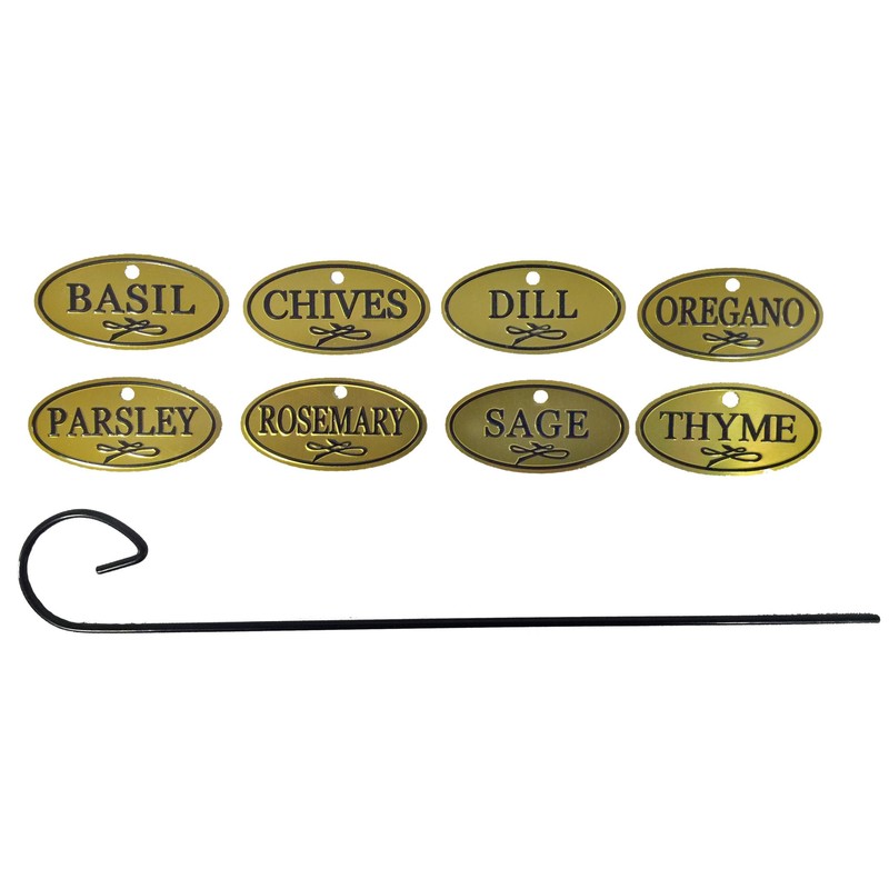 - 8 herbs tags are: Basil, Chives, Dill, Oregano, Parsley, rosemary, sage and time