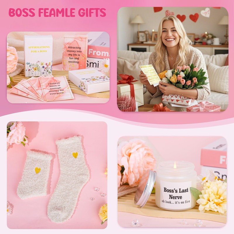 - BOSS LADY GIFTS FOR WOMEN: The boss lady gifts is specially designed with love and thought to impress and delight her, and show your boss lady you're grateful for her with this gift baskets for women. The inspirational words can make your boss more motivated about life and work when she uses this gift. She will definitely love this chic & thoughtful gift basket