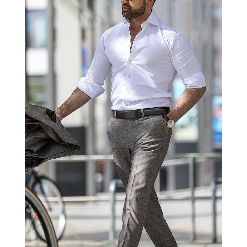 - Versatile Style: BOSTANTEN ratchet belt is made from Italian leather with the High-quality scratch-resistant metal buckle. It will look good with both casual and business casual attire and very comfortable whether you use it for work or leisure activities.