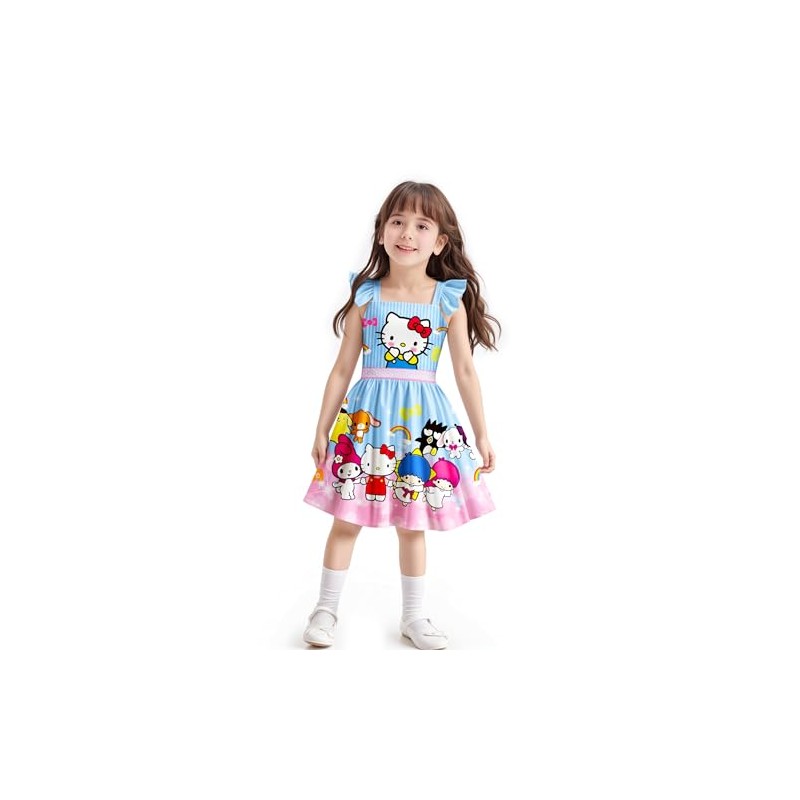 Bostetion Girls Cute Dress for Kids Cartoon Daily Dress for 5-14Y Casual Kids Party Outfit