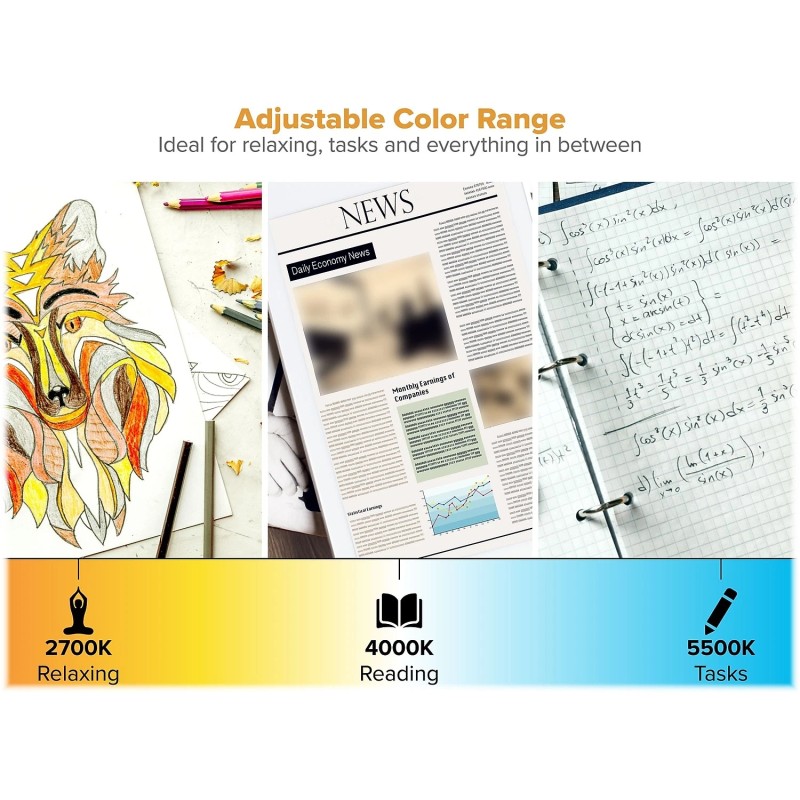 • Three adjustable color temperature modes for relaxing, reading, and tasks.