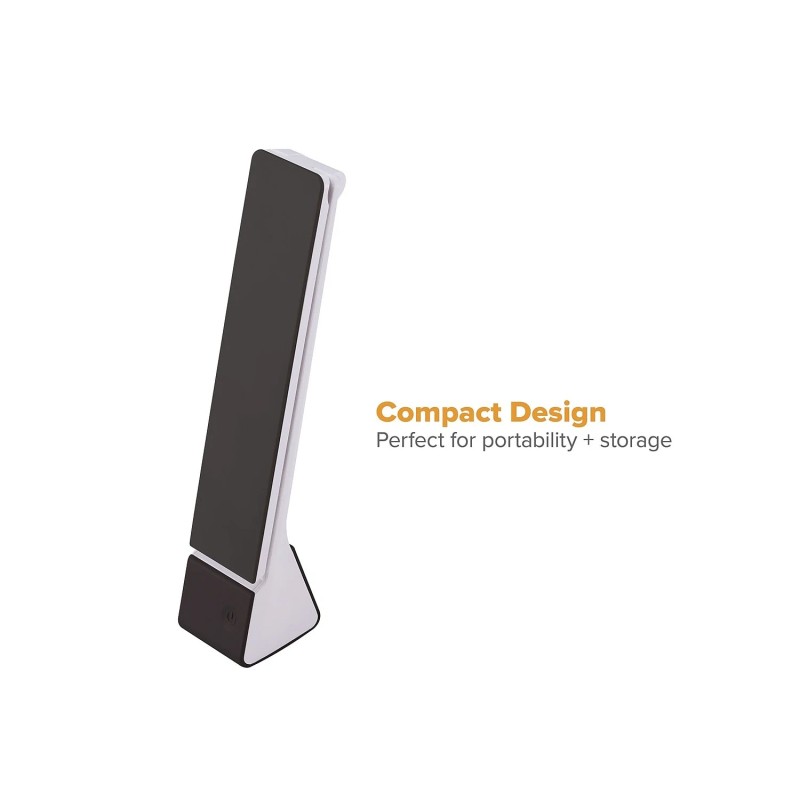 This Bostitch LED desk lamp is battery-powered for wireless illumination anywhere you go. With a compact, modern design, the top neck flips open and folds down for easy use and portability. Three adjustable color temperatures are available to suit every mood and task. Read, relax, or get work checked off your to-do list all with this lamp by your side. Plus, it only uses 4.5W of power. To charge this battery-operated desk lamp simply use the 3' power cord. It's USB rechargeable for strong illumination each time. Put this lamp on any desk to achieve the greatest aesthetic. We mean it when we say quality lighting has never looked this sleek.