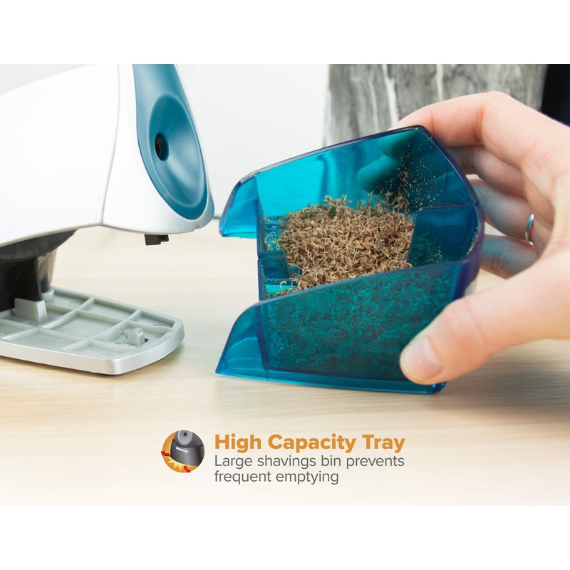 Designed to be compact, light, and efficient for the typical home or office user. Created with the home and office users in mind, its space-saver feature allows it to fit perfectly in any space and look great with its modern twist. It may be small, but it has a powerful motor you can rely on to operate stall-free. The high capacity, easy clean shavings tray will eliminate your frequent trips to the waste basket. And keeping your safety in mind, the shavings tray has the added benefit of safely preventing operation when the tray is removed. Expect precision and clean sharpening with the HHC Cutter Technology, which extends cutter life by 4x*. All completely built for personal convenience. 7 year warranty
