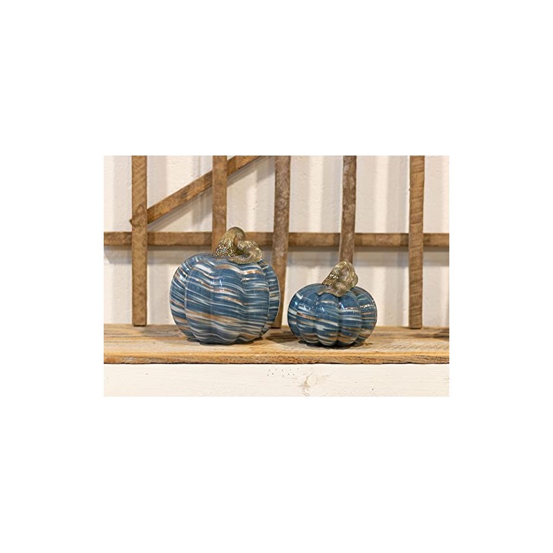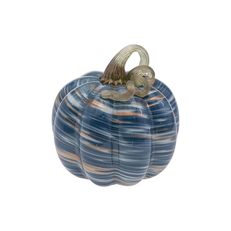 Boston International Glass Pumpkin Tabletop Shelf Décor Autumn & Fall Decorations, Medium, Denim & Copper