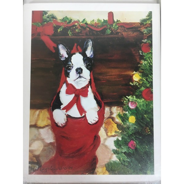 Boston Puppy in Stocking Holiday Note Cards