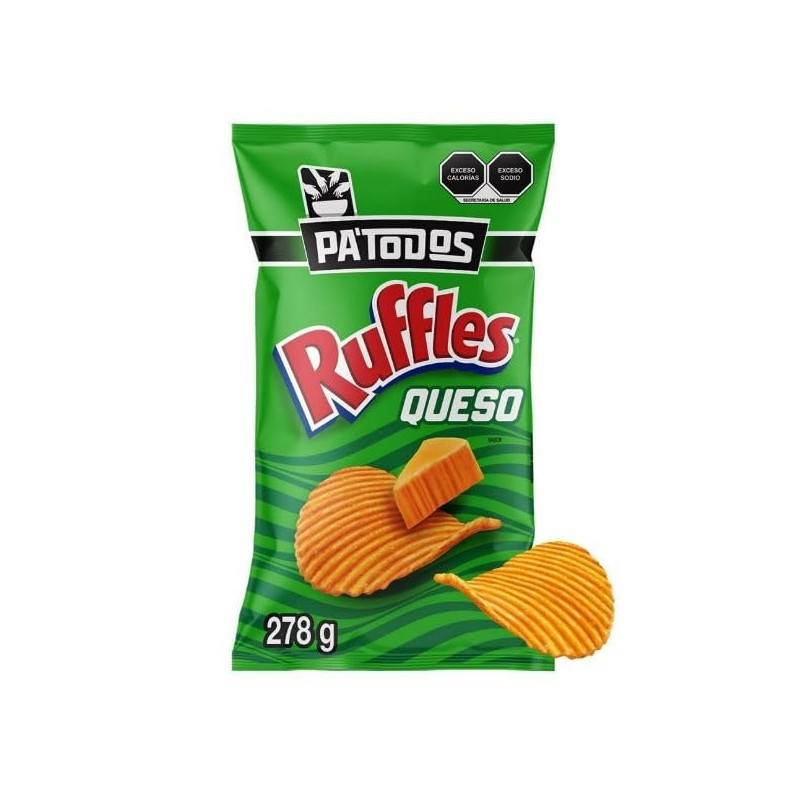 - "Las Papas Ruffles tienen una inconfundible forma ondulada y sabor a queso. Permiten una crujencia elevada para el consumidor que, sin duda, encanta a cualquier paladar y queda perfecto en cualquier reunión. Acompáñalas con dips naturales, salsa o disfruta su auténtico sabor característico. Ruffles es la botana oficial de las mejores licencias deportivas."