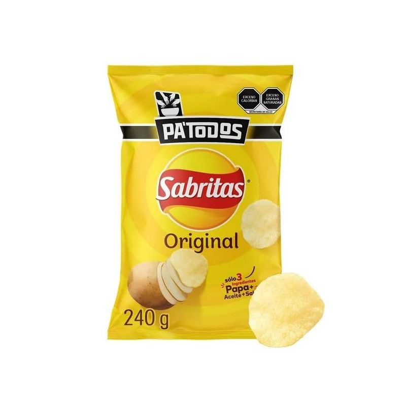 • "Las Papas Sabritas con su sabor original son ideales para todo tipo de ocasión y momento. Poseen papas naturales y un toque exacto de sal. La botana crujiente es perfecta para compartir con amigos y familia. Papas Sabritas, nuestra marca más icónica y favorita de nuestros consumidores por su increíble sabor y naturalidad."