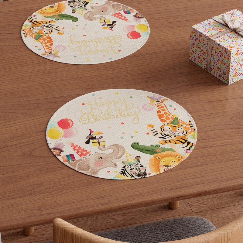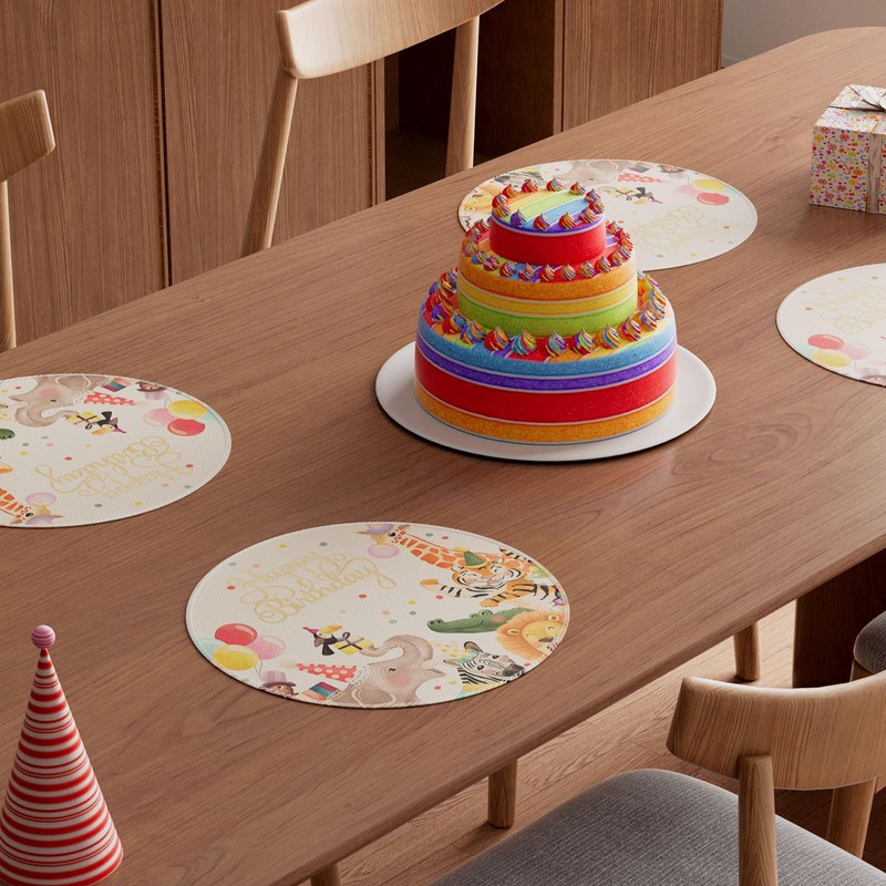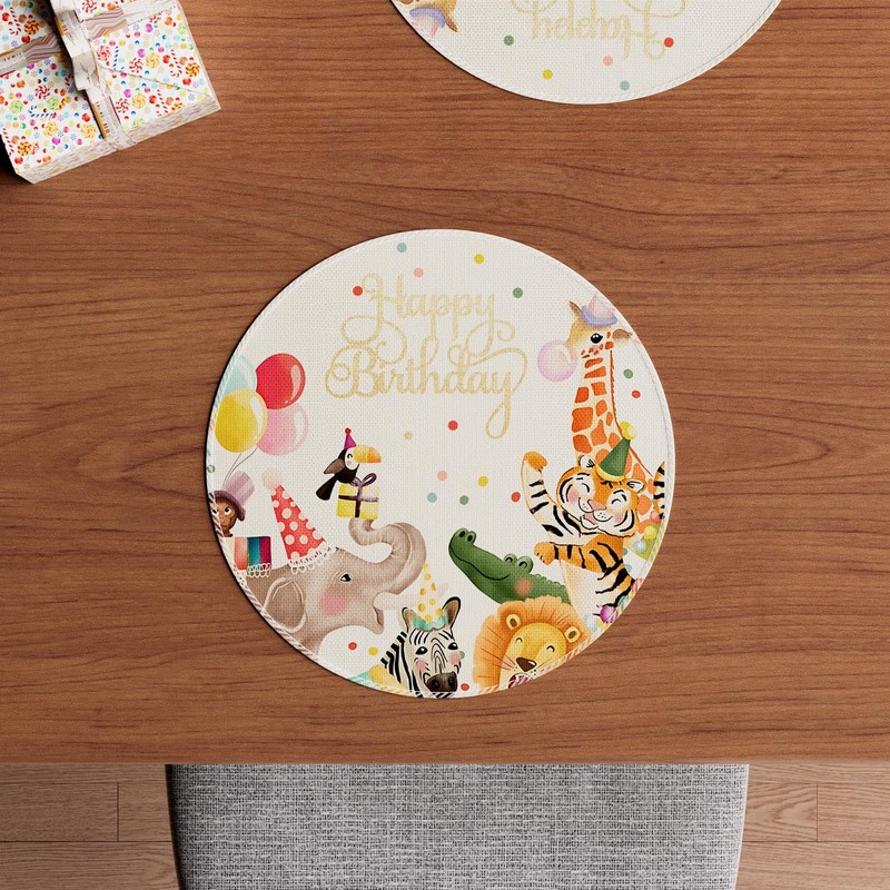 BOTB LIHM Happy Birthday Animal Party Balloons Round Placemats Set of 4 Table Mats Table Decorations 14x14 Inch