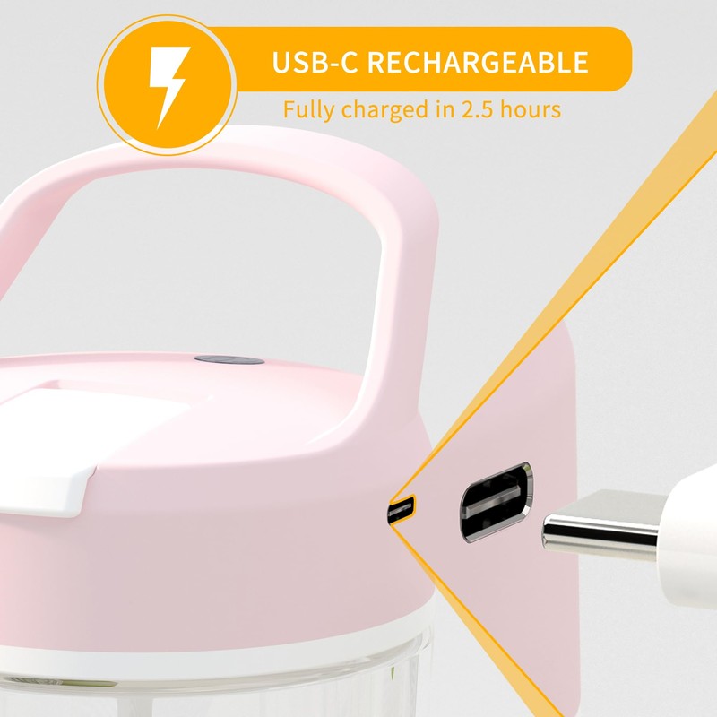 - BOTELLA DE PREENTRENAMIENTO RECARGABLE USB-C: no más dudas por quedarse sin batería durante tus sesiones de entrenamiento. Nuestra botella batidora portátil cuenta con un práctico puerto de carga USB-C que es resistente al agua, y con una capacidad de batería de 600 mAh, solo tarda 2 horas en cargarse por completo, proporcionando hasta 2 meses de uso (basado en la frecuencia de uso 3 veces a la semana). Mantente encendido y mantén tus suplementos mezclados con esta taza de licuadora de larga duración