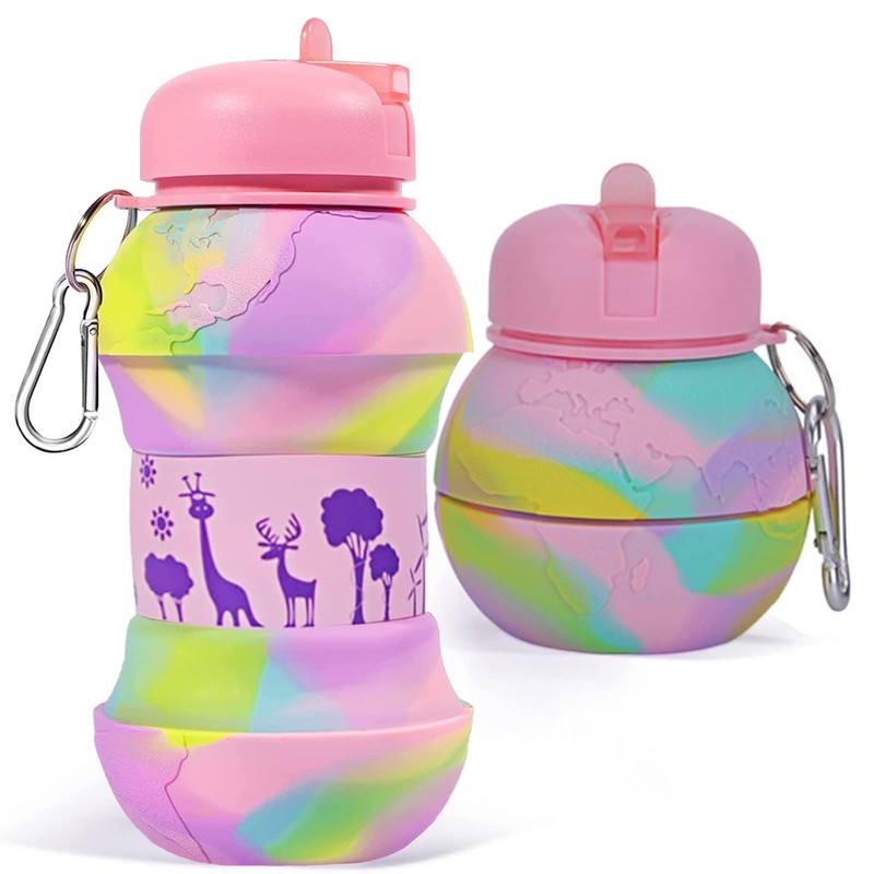 - 【Ampliamente utilizado】La botella de agua plegable es la combinación perfecta de diversión y practicidad, perfecta para viajes, gimnasio, ciclismo, correr, camping, pesca, senderismo y otros deportes al aire libre. La botella de agua plegable tiene un diseño nuevo y divertido que es fácil de conseguir la atención y el disfrute de los niños, y se puede dar como regalo a sus hijos, compañeros de clase y otras personas que les gusta el deporte para sorprenderlos y mostrar su cuidado.