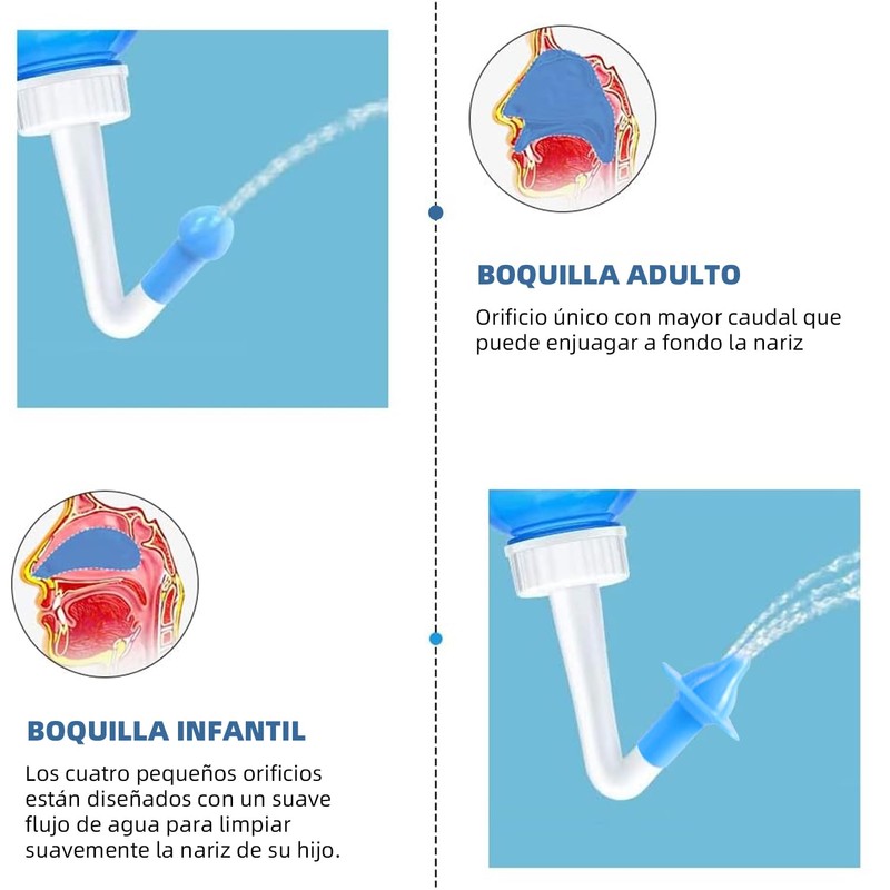 - AJUSTE PARA TODOS:nuestros dos accesorios diferentes garantizan un enjuague agradable, independientemente del tamaño de la nariz: diseño ideal para adultos o niños.