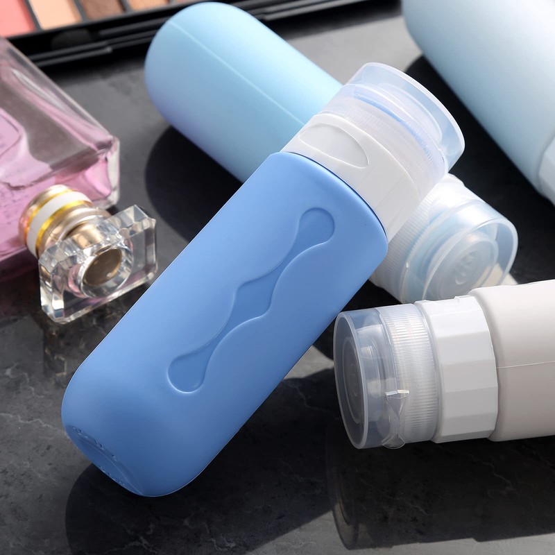 - Botellas de viaje a prueba de fugas: diseño a prueba de fugas de 3 capas que evita fugas de líquido o derrames, ofrece protección a tu equipaje y paños. La forma de ópalo permite que no se peguen líquidos en la esquina de la botella y te ayuda a obtener la última caída sin desperdiciar ningún producto de privacidad. Botellas de viaje a prueba de fugas para ti