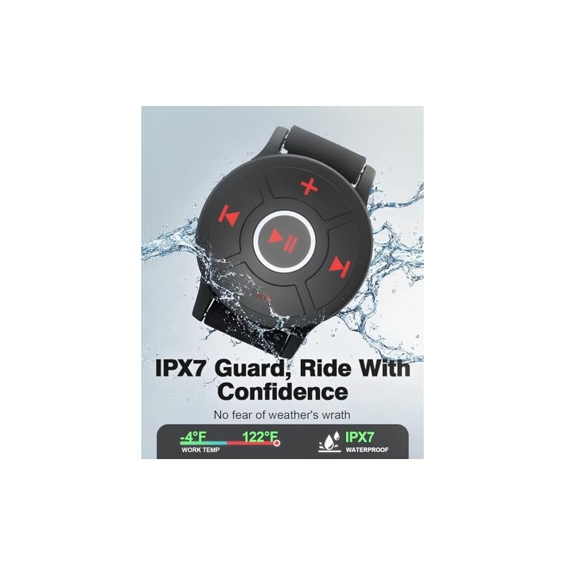 - Resistencia al agua IPX7 y resistencia a temperaturas extremas: funciona en -4°F a 122°F con impermeabilidad IPX7. Botón multimedia Bluetooth perfecto para lluvia/nieve en motocicletas, motos acuáticas o esquí