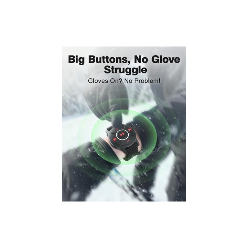 - 【Botones táctiles de gran tamaño para operación con guantes】Los botones remotos multimedia Bluetooth extra grandes (20 mm²) funcionan perfectamente con cualquier guante, ideal para esquí, motociclismo o deportes acuáticos