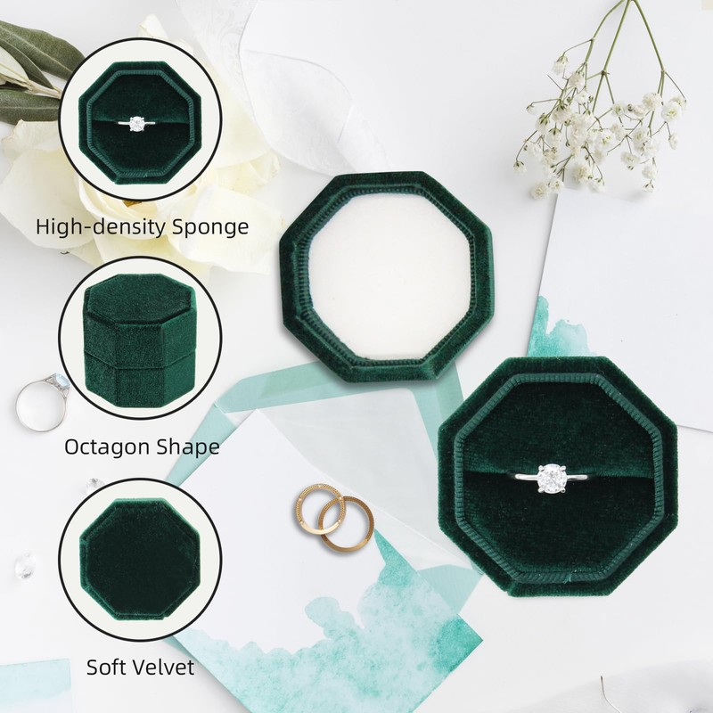 - Special Design: Our small ring box is designed in an octagonal shape with single ring slots to hold your wedding ring, engagement ring. The velvet texture adds to its luxurious elegance