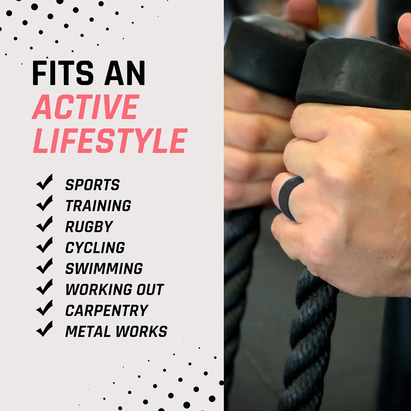 These rings are ideal for various types of activities including: sports training, rugby, cycling, swimming, working out, carpentry, and metal works.