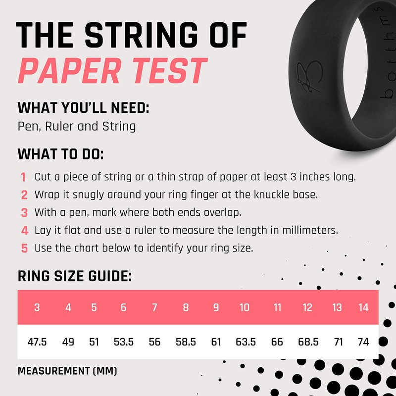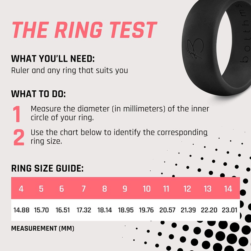 Find the Botthms Silicone Wedding Ring that fits you best. Refer to the size guides below.