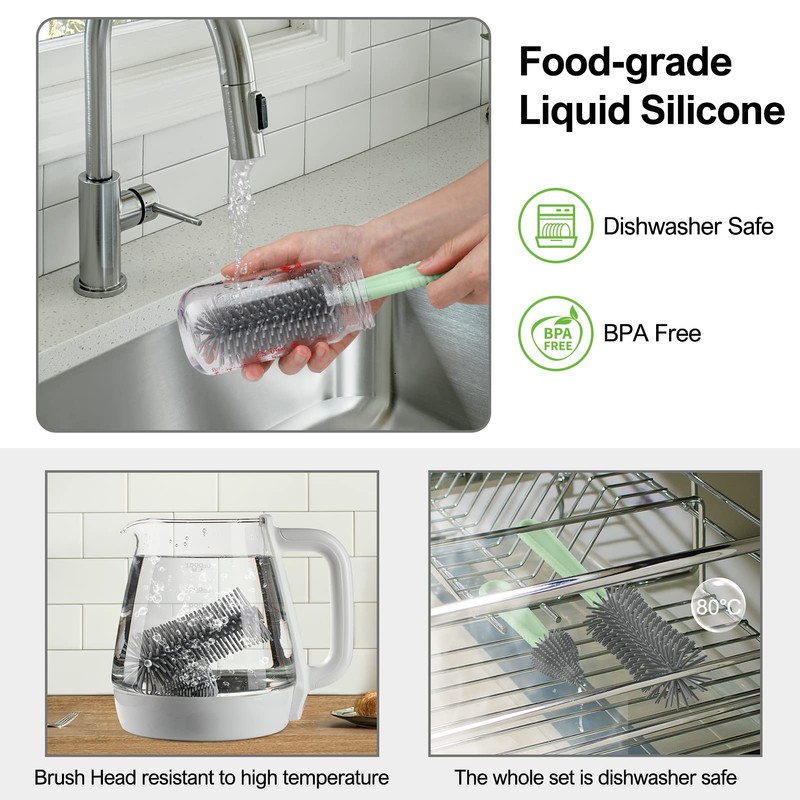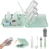 Bottle Brush Set -Baby Travel Essential-6 in 1 Bottle Cleaner Kit with Silicone Bottle Brush,Nipple Cleaner Brush,Straw Brush,Soap Dispenser,Storage Box,Bottle Drying Rack for Home and Travel(Green)
