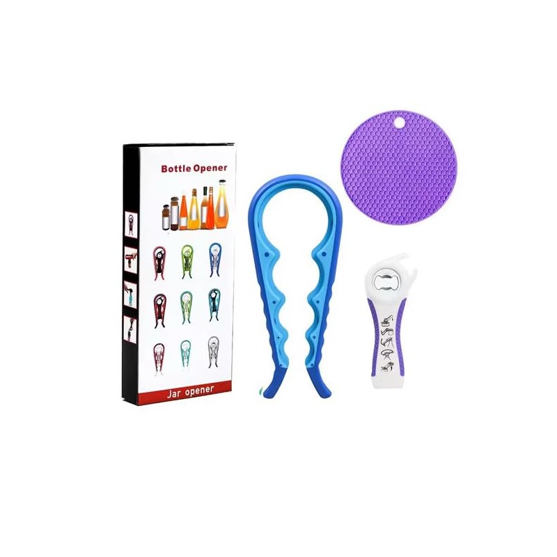 Bottle Opener/Easy to use Can Opener/lid, Cap Remover/Multi-Functional Kitchen Gadget, Safe, Pain-Free.Non-Slip Jar Opener (1, Blue/Purple)