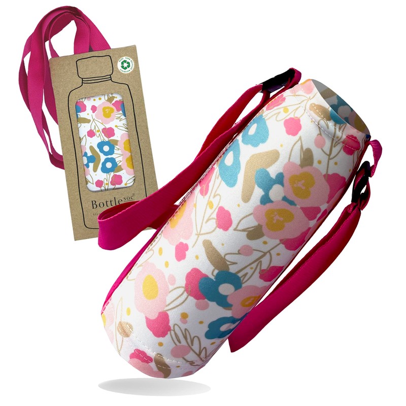 Bottlesoc Water Bottle Holder with Shoulder Strap | Evergreen Flower Design - Washable Cover for Walking and Travel | Eco-Friendly Case with Adjustable Strap | Reusable