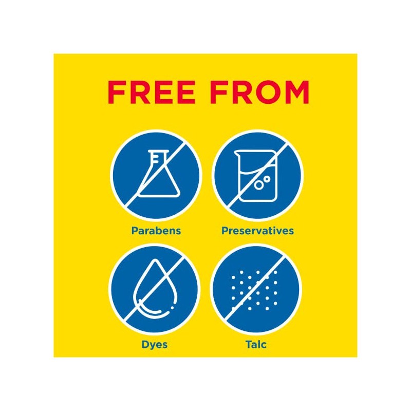- Free from dyes, preservatives, parabens, and talc