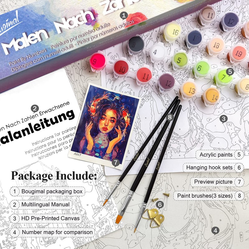 • ✍𝘽𝙚𝙩𝙩𝙚𝙧 𝘾𝙪𝙨𝙩𝙤𝙢𝙚𝙧 𝙀𝙭𝙥𝙚𝙧𝙞𝙚𝙣𝙘𝙚:Bougimal paint by numbers come in a beautiful gift box, it's a wonderful gift! We promise to provide 60 days free color support and lifetime painting instruction