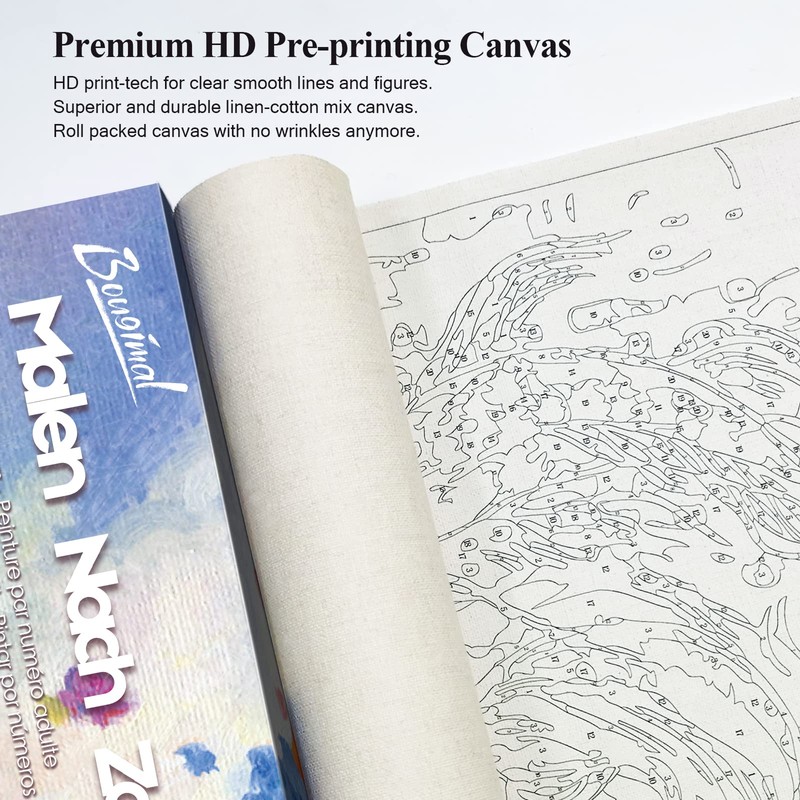 • ✍𝙋𝙧𝙚 𝘿𝙧𝙖𝙬𝙣 𝘾𝙖𝙣𝙫𝙖𝙨:It is made of high-quality waterproof cotton linen suitable for long-term storage. Bougimal's unique printing technology makes the numbers and lines smoother and clear, allowing for better pigment coverage. Roll-up canvas is wrinkle-free and need no ironing compared to most folded canvases