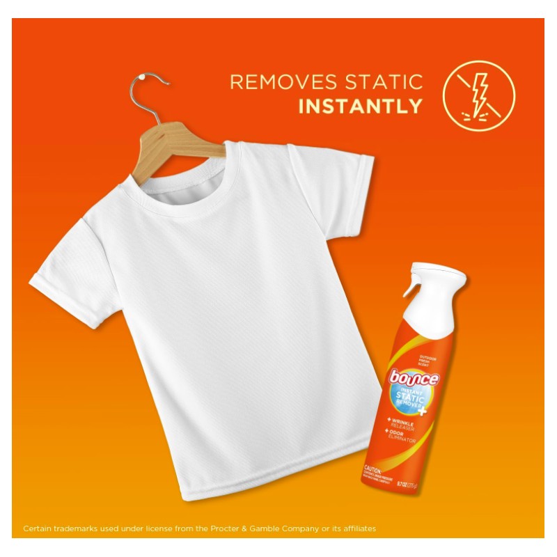 Upgrade your laundry routine with Bounce Anti Static Spray, the 3-in-1 solution that brings convenience, freshness, and wrinkle-free perfection to your clothes. Discover the rapid touch of Bounce for a seamless laundry experience.
