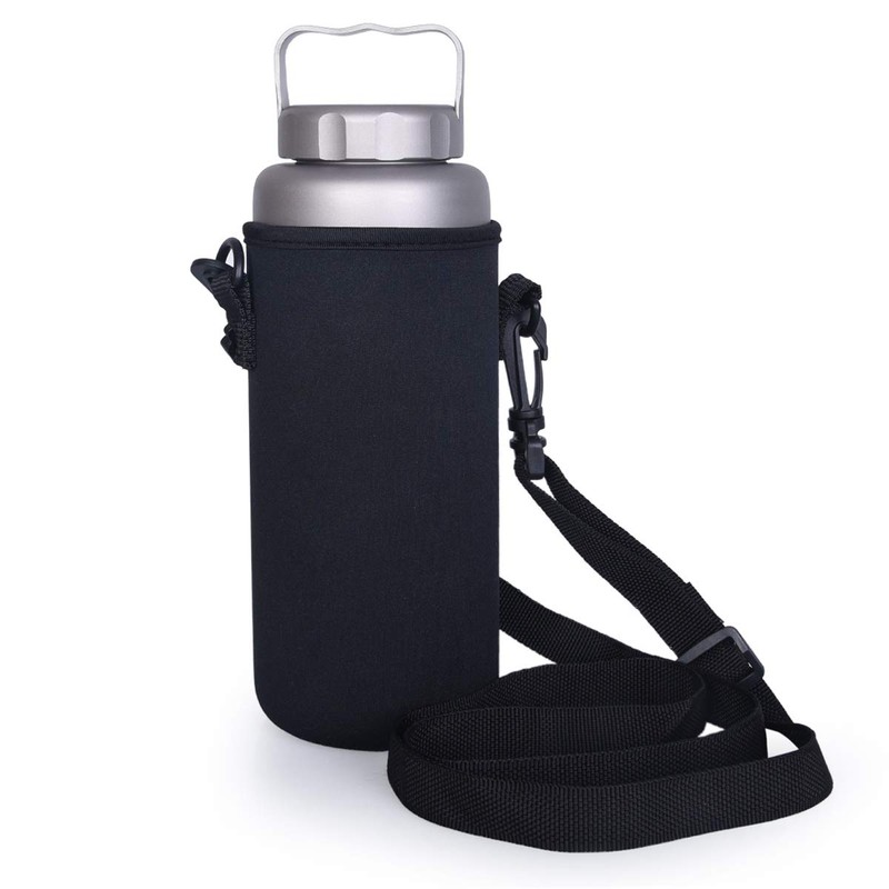 Boundless Voyage 1050ml Pure Titanium Bottle, Wide Mouth, Large Capacity, Direct Drinking, Outdoor Climbing, Sports Water Bottle, Leak Proof, Lightweight, Rust Free, Strap Pouch (1050ml (with Handle) - Ti1506B)