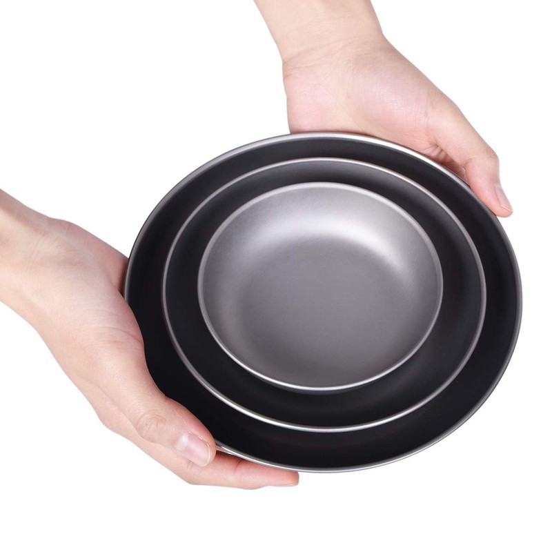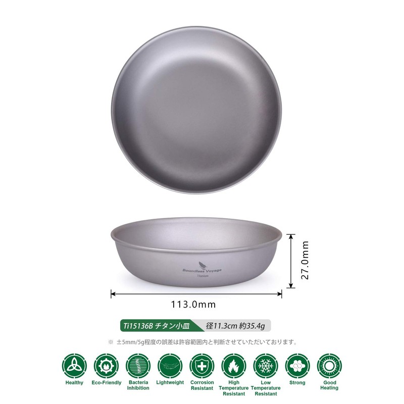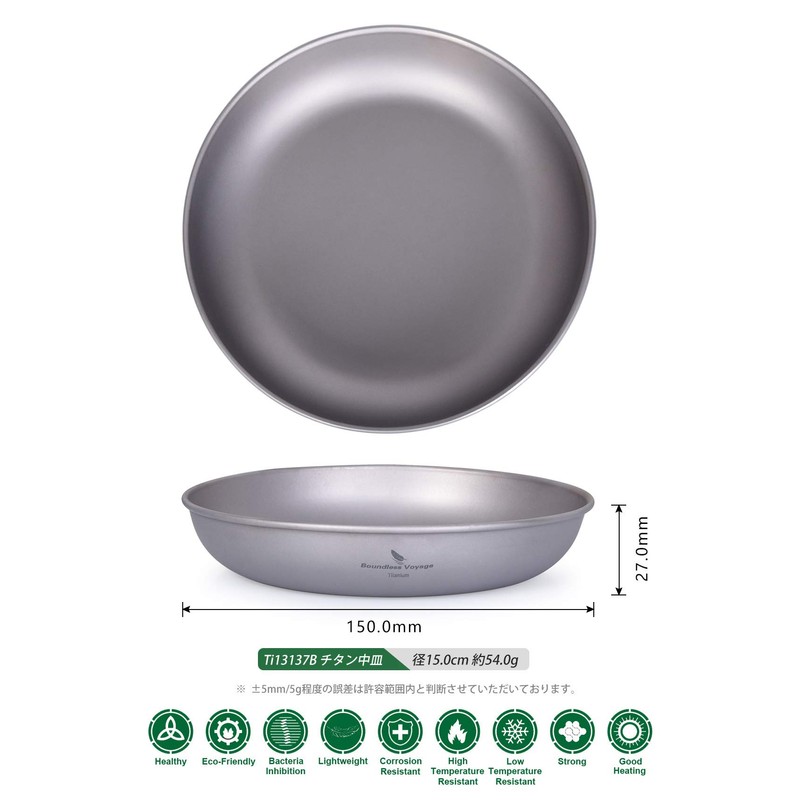 Boundless Voyage Ti15139B Titanium Plates, Round Plates, Dishes, Dishes, Unbreakable, Rust-free, Lightweight, Pure Titanium, Dishwasher Safe, Home, Outdoors, Camping, Mesh Storage Bag Included, 4.4 inches (11.3 cm), 5.9 inches (15 cm), 7.3 inches (18.5 cm), Set of 3