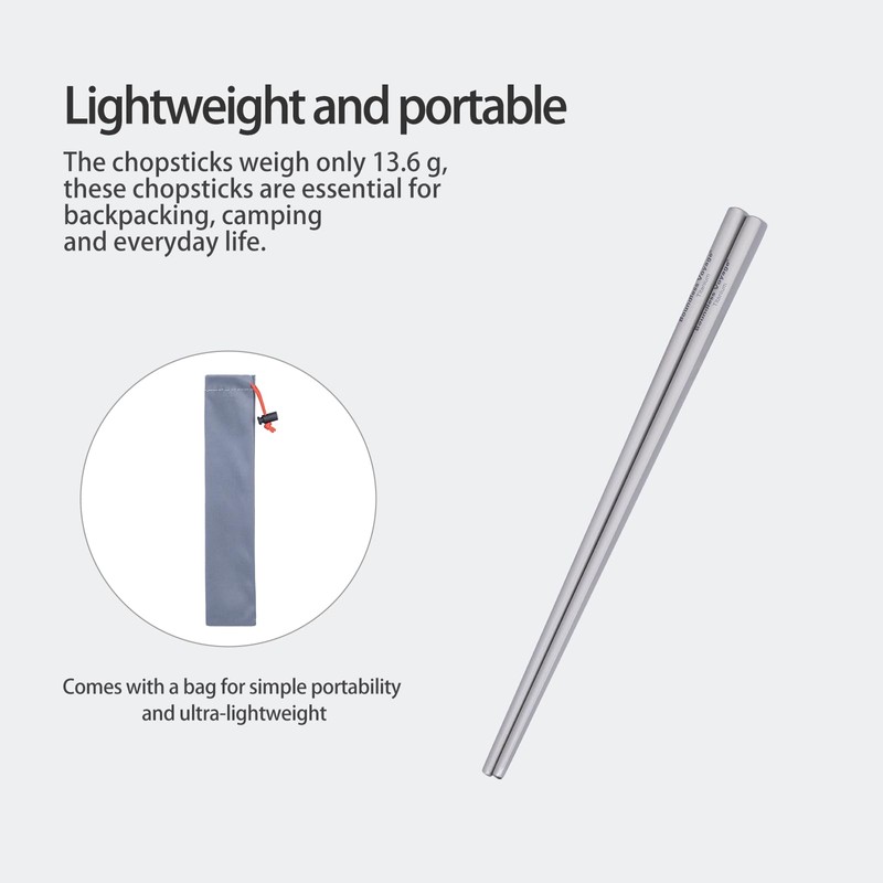 - Lightweight & Portable - Comes with a bag for simple portability and ultra-lightweight, these chopsticks are essential for backpacking, camping and everyday life.