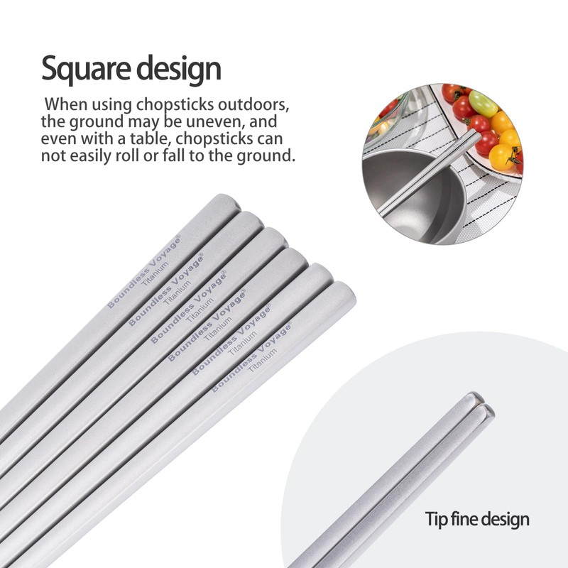 - Durable Titanium Chopsticks - Unlike other usual aluminum, plastic or throw away wood chopsticks, our chopsticks are made of high-quality pure titanium material, which is strong and durable.