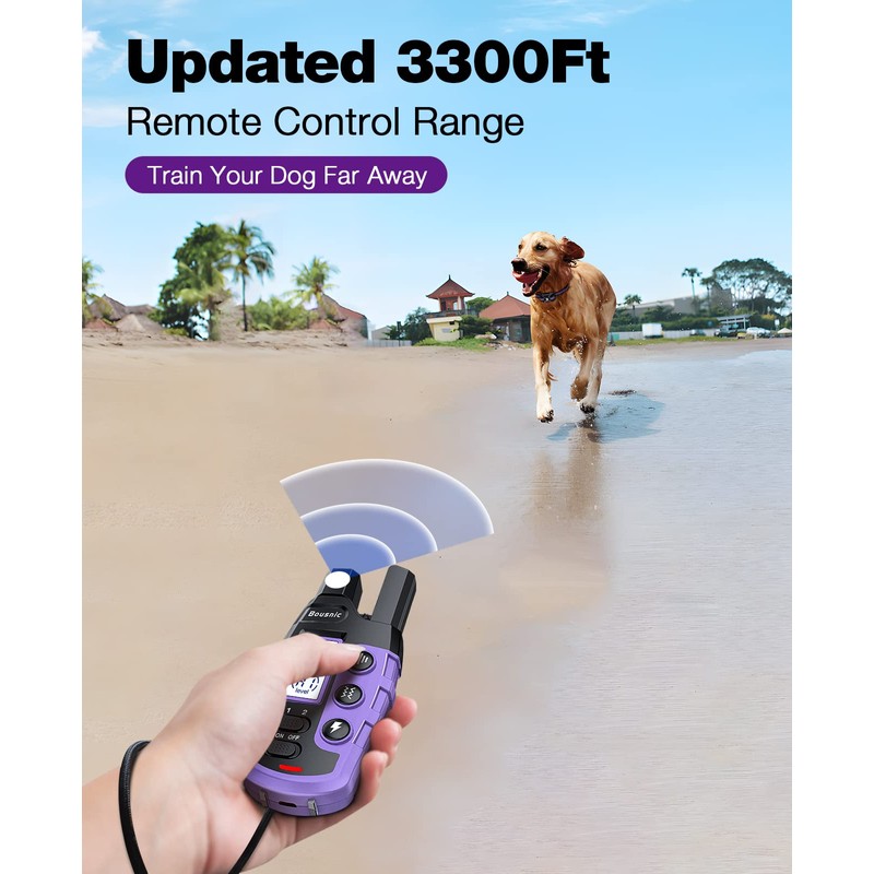 - Extended 3300FT Range,Twice of competitors:Bousnic Dog Training Collar covers up to 3300Ft allowing your pet to roam farther. With dual-channel, It is perfect to train 2 dogs simultaneously outdoor at distances up to 3/4 mile.