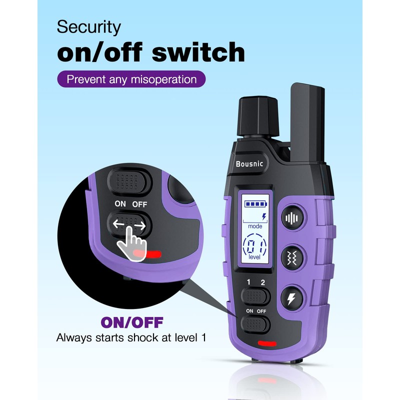 Bousnic Dog Shock Collar - 3300Ft Dog Training Collar with Remote for 5-120lbs Small Medium Large Dogs Rechargeable Waterproof e Collar with Beep (1-8), Vibration(1-16), Safe Shock(1-99) Modes(Purple)