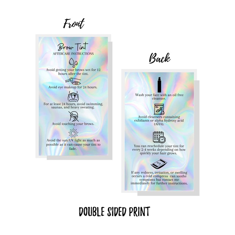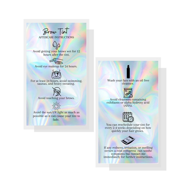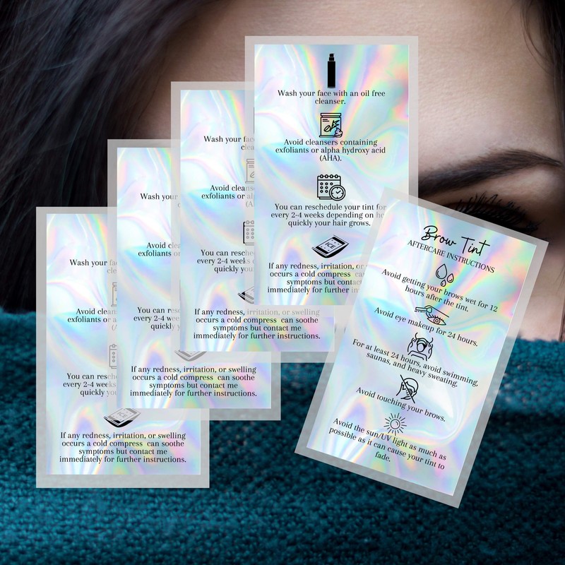 • Eyebrow tinting aftercare instructions printed on front and back!