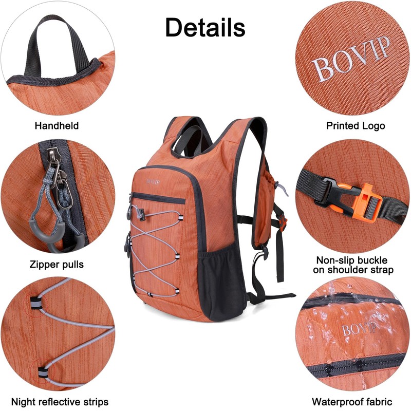 BOVIP 20L Hiking Backpack Lightweight Packable Hiking Daypack Small Travel Outdoor Foldable Shoulder Bag Orange