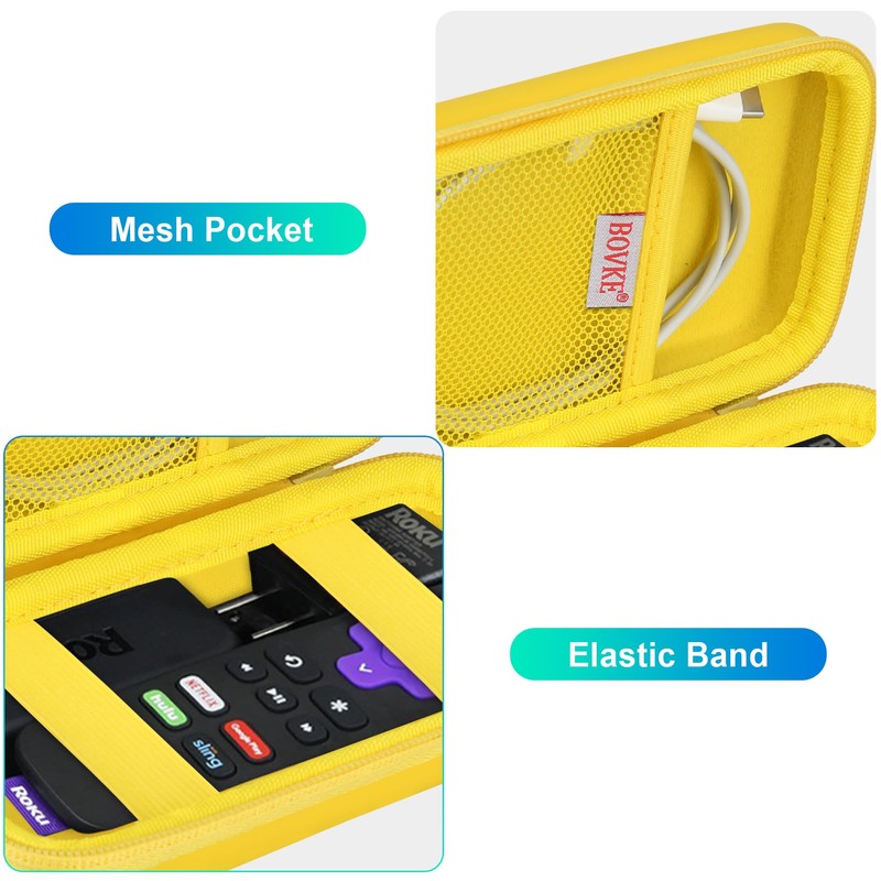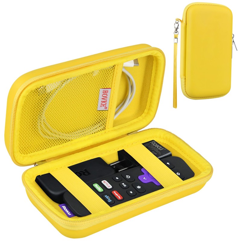 BOVKE Hard Case for Roku Voice Remote Controller, Roku Streaming Stick+ / 4K, Roku Remote Case for Roku TV Steaming Stick 3820R/ 3821R/3941R, Extra Mesh Pocket for Adapters, Cables, Yellow