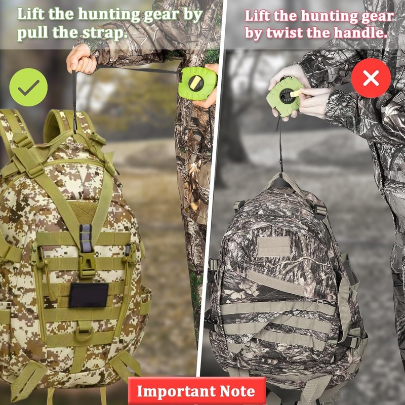 - Ease Of Use : Quick and Easy Reel Rope Up for Crossbow, Gun, Backpack, Rifle, Tree Stand Hunting Accessories,consider features like a smooth-operating crank, retractable design for easy storage, and intuitive controls for effortless raising and lowering