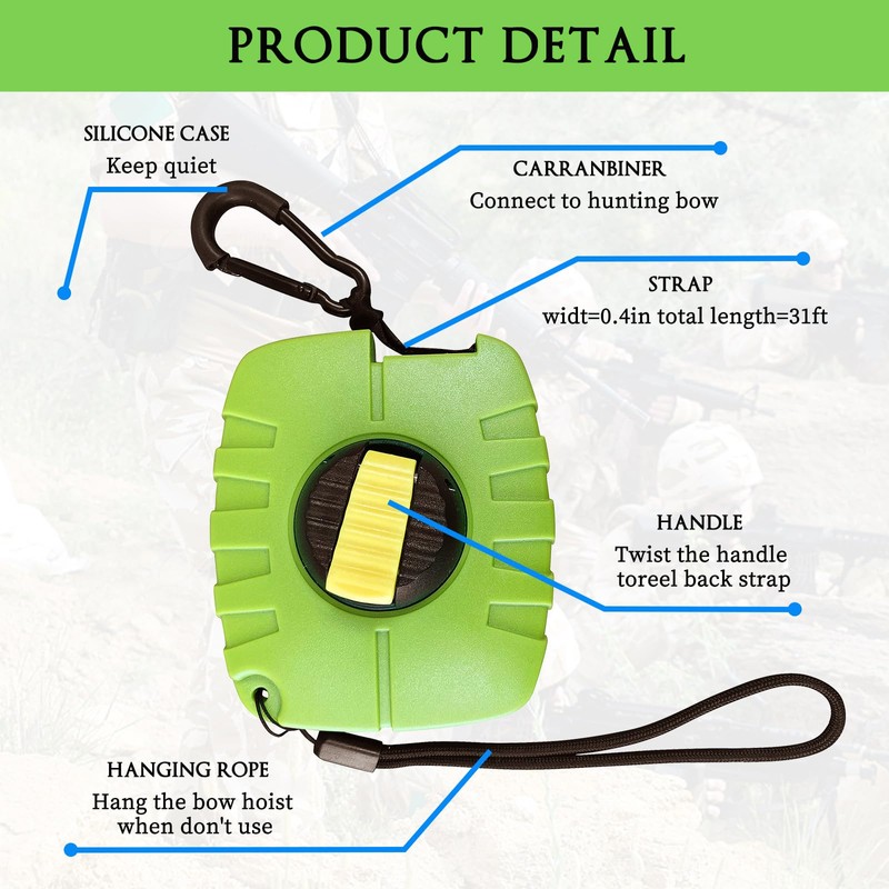 - Rope Length/quality: 29.5FT Tree Stand Retractable Bow Hoist ,Bow Rope with Crank Handle for Easy Rope Rewinding, Consider both retracted and extended lengths,Rope Material synthetic ropes are durable and resistant to wear and weather. Avoid thin or low-quality materials
