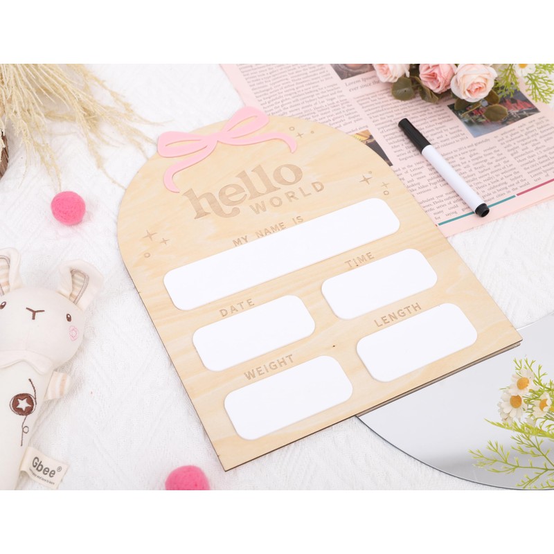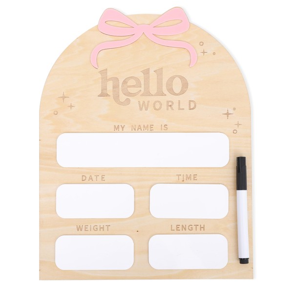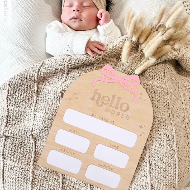 Bow Baby Birth Announcement Sign-Wooden Milestone Card, Hello World Sign, Nursery Decor, Birth Announcement Board, Decorative Photo Props Baby Shower, and Souvenirs